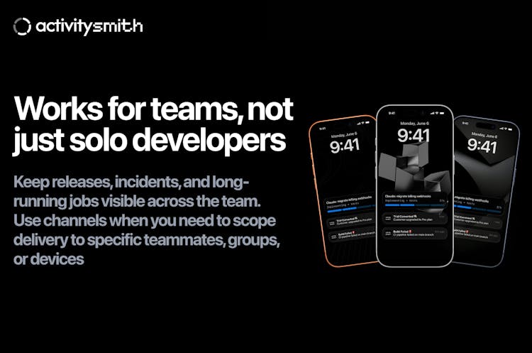 - Invite teammates, let each person pair their own device, and share Push Notifications and Live Activities across your team