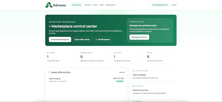 Admesio is a platform where digital products and advertisers connect more directly. Instead of relying on fragmented and unclear systems, publishers can showcase their products (apps, websites, platforms, and more), while advertisers can explore and discover relevant opportunities in a simpler way. What makes Admesio different is its focus on visibility and discovery — helping publishers get noticed and helping advertisers find better-fit opportunities without unnecessary complexity.