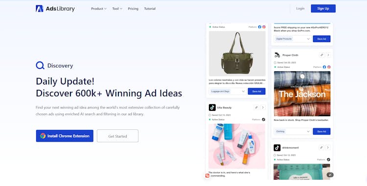 Access Adslibrary via web or browser extension for seamless research.