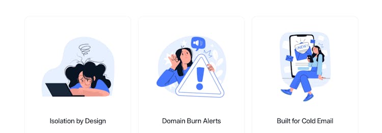 Aerosend helps teams scale their cold email efforts safely with inboxes that run on dedicated servers, feature smart deliverability systems, and come with embedded security.