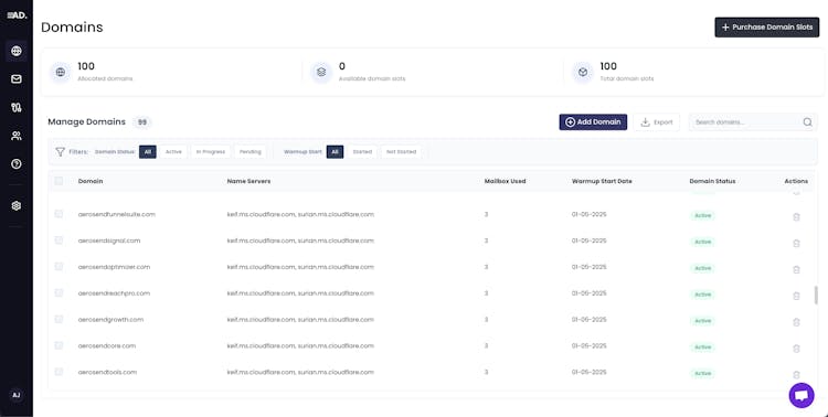 Aerosend’s cold email infrastructure platform delivers inboxes that are engineered for optimum deliverability. With pre-warmed and domain-rotated setups, smart monitoring, and protections against spam triggers, we help teams scale their outreach while maintaining inbox placement for every campaign.