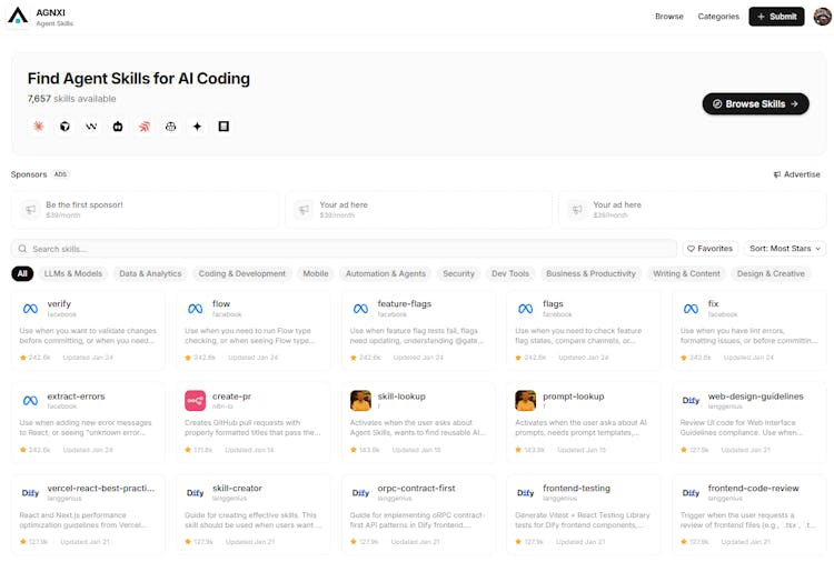 Agent Skills Directory is a community-driven platform for discovering, browsing, and sharing skills for AI coding agents like Claude, Cursor, Windsurf