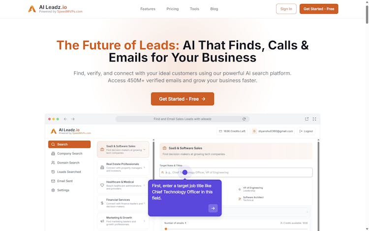 AILeadz is an AI-powered lead generation and outreach platform that helps you find, verify, and engage the right B2B prospects from one place. Using AI-driven search and advanced filters, you can discover leads by role, industry, company size, and geography, then instantly access verified business emails with high deliverability.