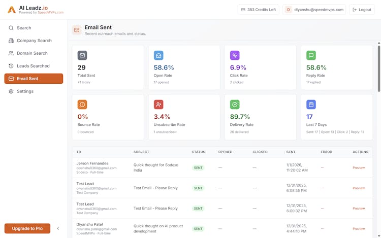 Every lead is enriched with professional and company-level insights, making personalization easier and outreach more relevant. Results can be exported instantly in CRM-ready formats or used directly for outbound campaigns. With built-in email sending and tracking, teams can manage the entire prospecting and outreach flow without juggling multiple tools.