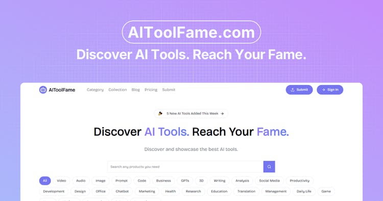 AIToolFame is a curated directory of AI tools, helping users discover the best AI tools and showcase their AI solutions.