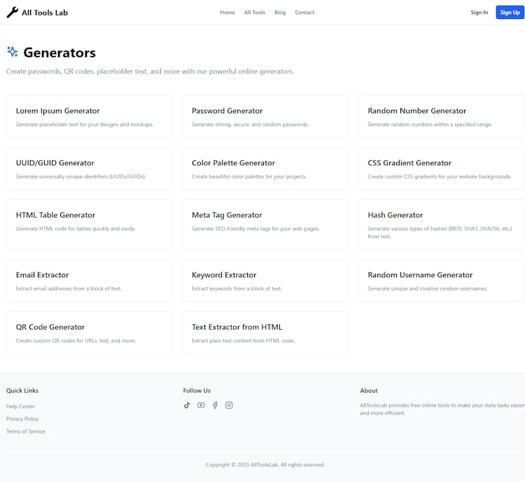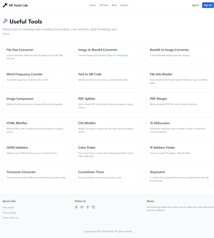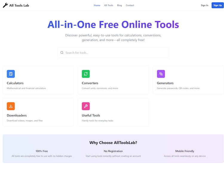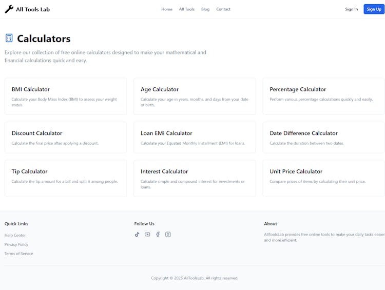 AllToolsLab brings together essential calculators, converters, and utilities in a single responsive platform built for speed, simplicity, and everyday usefulness.