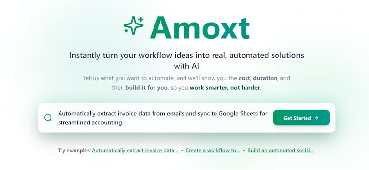Amoxt is an AI-powered platform where users can type a single sentence to visualize the automation they (e.g. email replying, AI chatbots, data entry tasks) need to streamline their manual work. It instantly creates a project description, showing the timeline, cost, and scope of the solution, and then the team builds it for you.
