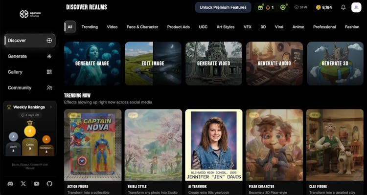 AI-powered image, video, audio, and 3D generation platform with custom LoRA training. Create professional content from text or images in 10+ languages, no technical skills required, up to 75% cheaper than Sora & Veo