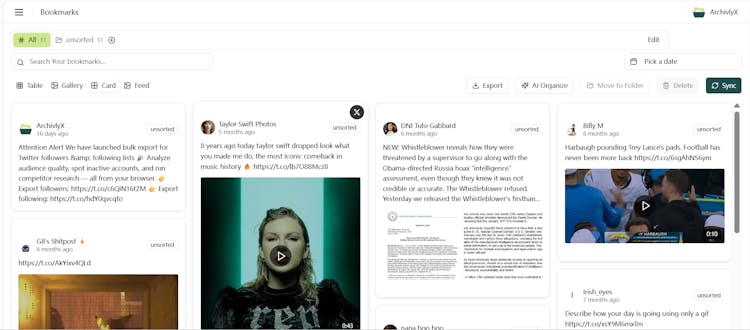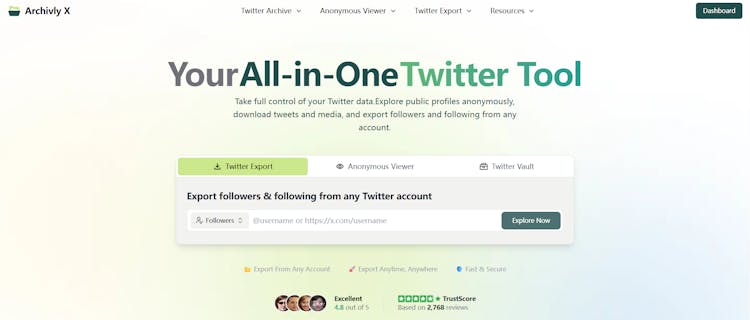 ArchivlyX is a Twitter archive and Twitter export tool that helps you back up tweets, bookmarks, likes, followers, and following. Export your Twitter data to CSV or Excel, keeping everything searchable and organized.