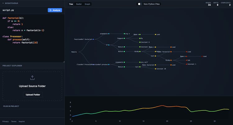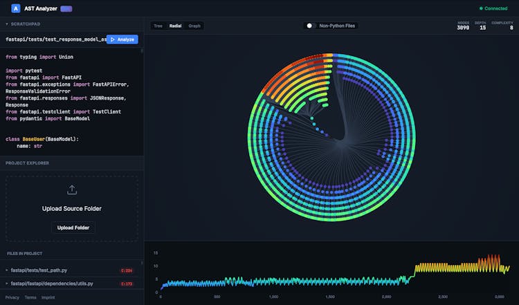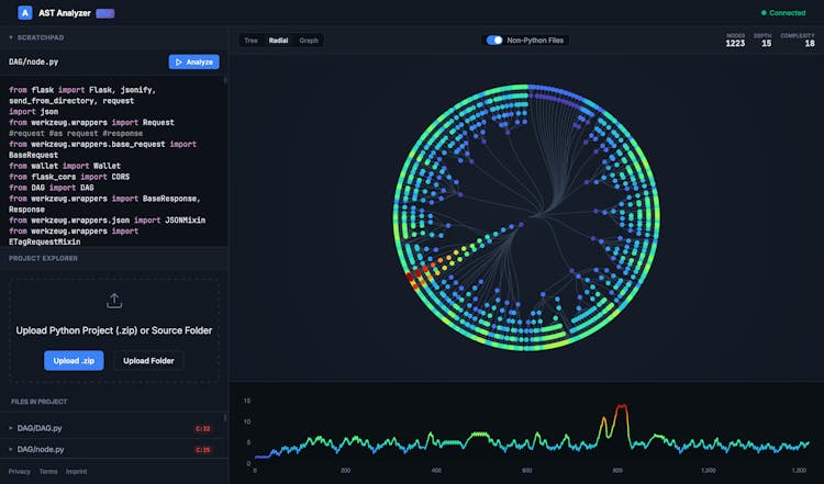 Ast-visualizer.com provides a deterministic, algorithmic explanation of your Python codebase. While an LLM might "guess" that a module is complex, our tool uses AST analysis to prove it. Mapping every dependency and calculating exact cyclomatic complexity scores.