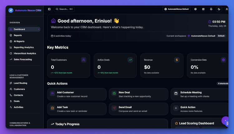 AutomateNexus CRM represents the future of customer relationship management—where artificial intelligence meets intuitive design to deliver unprecedented business growth and customer satisfaction.