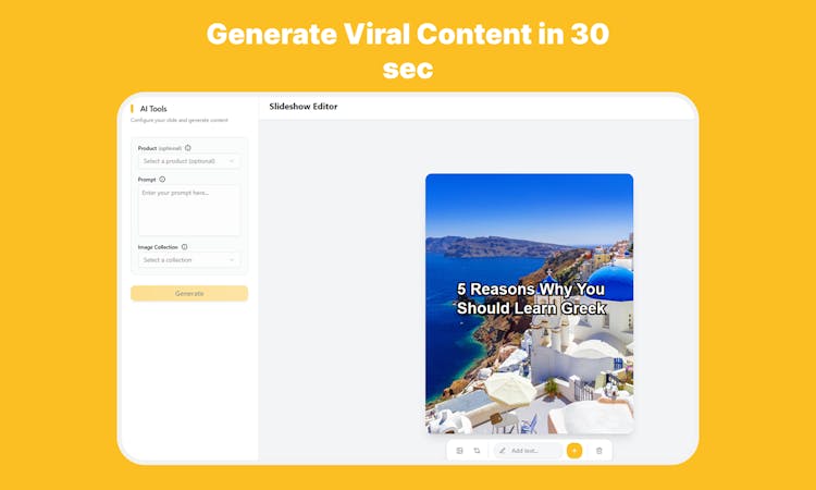 AutoSlides helps you create viral TikTok and Instagram slideshows for your app,product or business!
