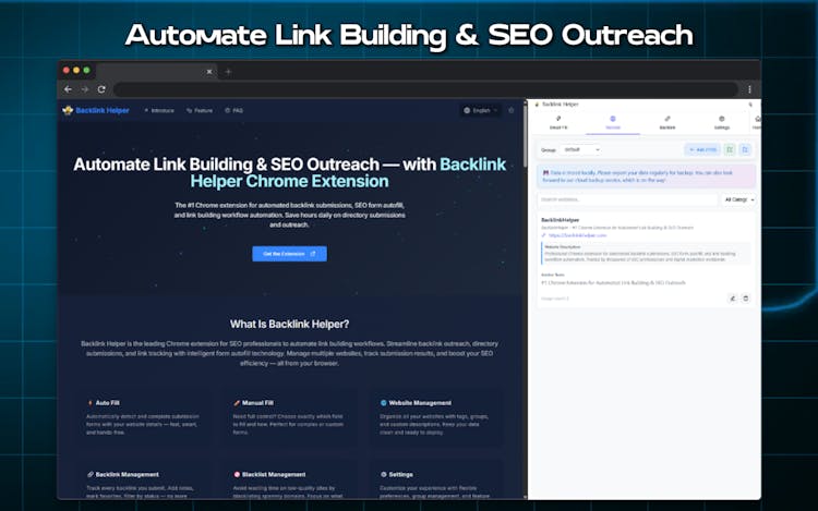 BacklinkHelper is a powerful Chrome extension designed to make backlink building faster, smarter, and easier for SEO professionals, marketers, and website owners. Whether you are running outreach campaigns, submitting your site to directories, or managing guest post opportunities, BacklinkHelper automates the tedious parts of link building so you can focus on strategy.