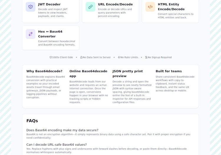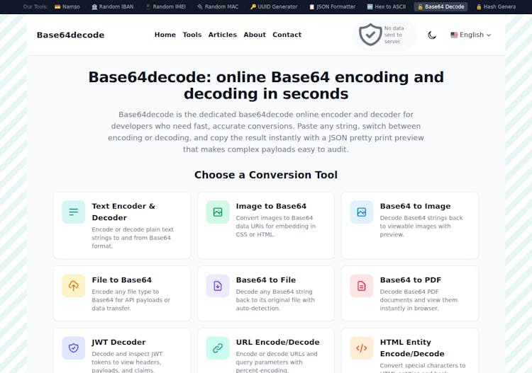 Encode and decode Base64 strings and files instantly in your browser. Supports text, images, and binary files. 100% client-side.