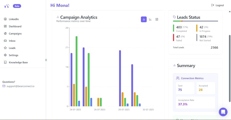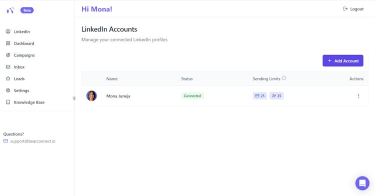 Bearconnect is a top-tier LinkedIn automation tool ideal for sales teams and agencies. Automate connection requests, follow-ups, drip campaigns, and content scheduling to streamline your outreach and grow your network effortlessly in one unified dashboard.