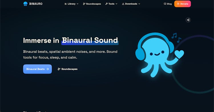 Binauro is a free online binaural beats and soundscape generator designed for focus, sleep, and meditation. Create custom sessions that match your mood or goal, from deep relaxation to sharp concentration. Play instantly in your browser, adjust frequencies in real time, and download your tracks for offline listening — no ads, no sign-up, just pure sound. A lot of other features are on the site too, like a spatial audio mixer, a equalizer etc.