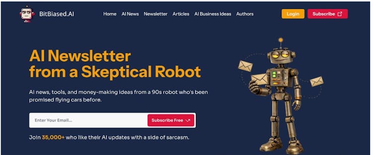 A distinctive element of the brand is Robi, the platform’s signature robot persona. Robi provides sharp, witty commentary on AI developments, adding clarity and perspective to complex topics. This gives the brand a memorable identity while maintaining professional credibility.