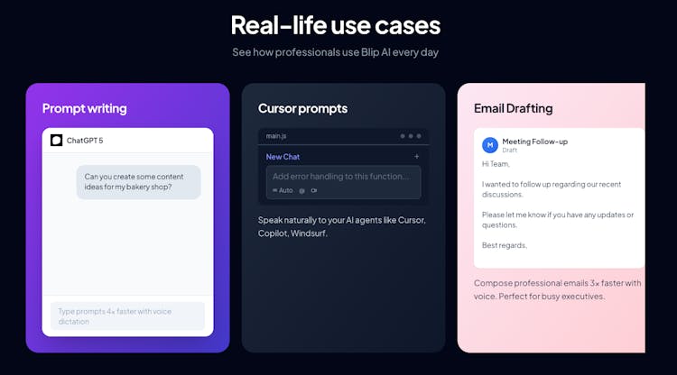 Blip AI is a PC dictation app that lets you speak naturally and writes in your style across every application, 4x faster than typing. With auto-edits, AI commands, and 100+ languages, Blip saves you hours by producing perfectly formatted text instantly.