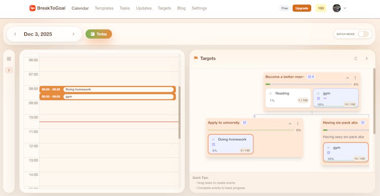 Turn goals into action with a calendar-driven workflow.