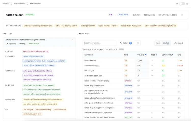 Traditional keyword tools only show variations of what you already know. BrightKeyword takes a different approach: enter any topic, and AI discovers keywords you'd never find on your own. It generates 9 keyword types others miss (synonyms, industry jargon, long-tail, questions, LSI, phrase match), auto-clusters them by search intent with recommended page types, and enriches everything with real Google data: volume, CPC, competition, and 12-month trends. From topic to content plan in minutes.