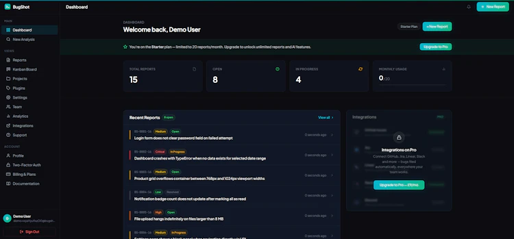 BugShot eliminates manual bug reporting by turning a single screenshot into a complete, developer-ready ticket in seconds. Unlike traditional tools, it auto-generates reproduction steps, captures environment data, and files reports directly to GitHub, Jira, Linear, or Slack removing back-and-forth and dramatically speeding up debugging.