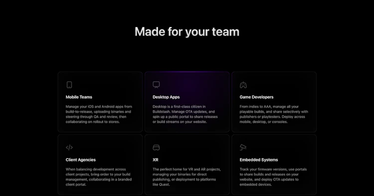 A new accessible approach to build artifact and release management for software teams. For mobile and desktop apps, games, XR, or embedded - never lose a build again, distribute to testers, steer through QA and sign-off, and manage your rollouts.