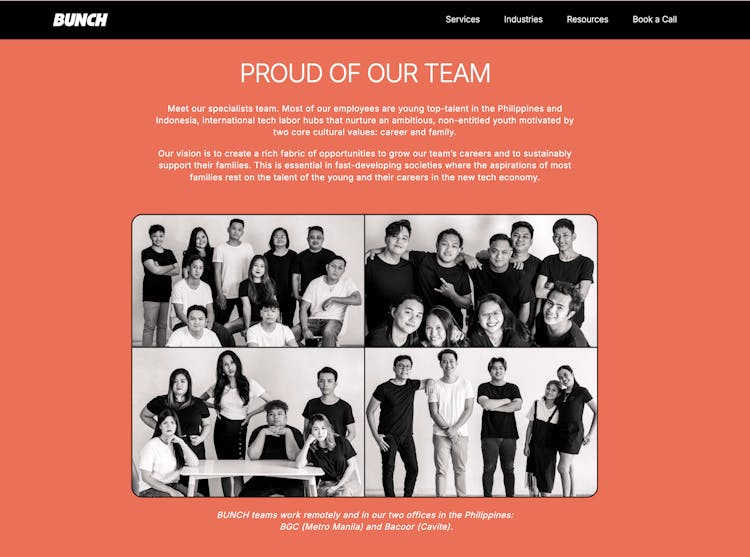 BUNCH builds expert outsourced teams in the Philippines for fast-growing tech companies — powering AI, content moderation, community management, and customer support.