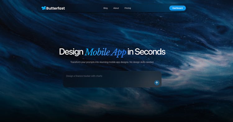 Butterfast is an AI design tool that generates production-ready mobile app screens from a simple text prompt.