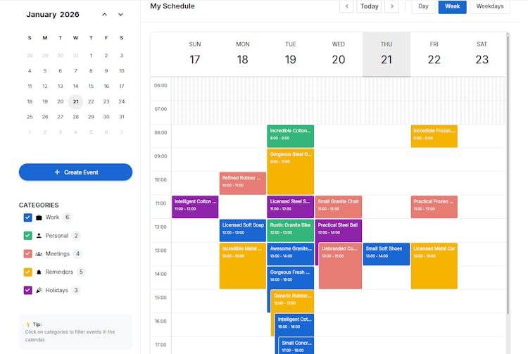 Meet CalendarJS, a free MIT modular suite of JavaScript components that makes time-based UI painless. Drop in a date & time picker, a full scheduling calendar (Google Calendar–style), and a timeline—all framework-agnostic, fast, and beautifully responsive.