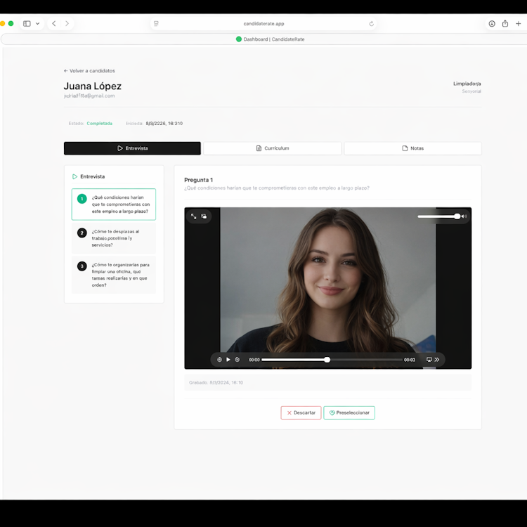 By removing scheduling bottlenecks and standardizing first-round interviews, CandidateRate helps companies pre-screen candidates faster, reduce hiring time, and focus only on the most promising applicants.