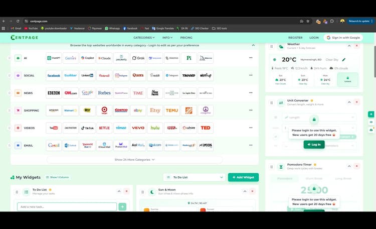 CentPage was born out of a simple idea: make the internet easier to navigate. With hundreds of websites competing for attention, we wanted to create a central place where you could access all your favorite sites quickly and efficiently.