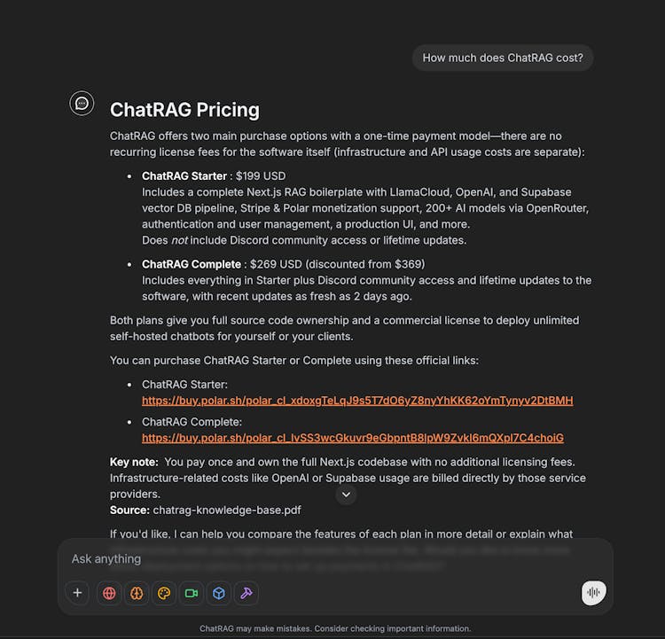 The complete Next.js boilerplate for launching your chatbot-agent SaaS business. Pay once, own forever. Turn your data or that of your clients into recurring revenue. Deploy unlimited RAG-powered chatbots that monetize your expertise. Charge subscriptions, keep all the profits. Your AI business in a box.