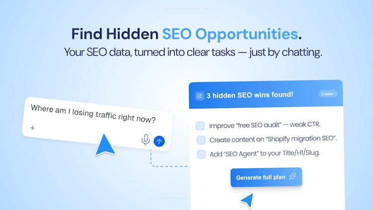 ChatSEO connects to your Google Search Console and market intelligence tools to give you clear actions to drive more SEO and AI search traffic. Stop guessing your SEO, just ask and act on your own data.