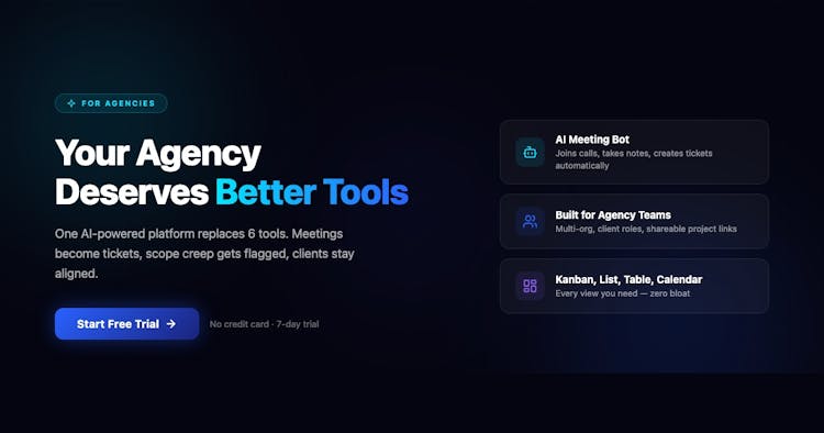 Running a tech agency or design studio means juggling clients, projects, and deadlines all at once. Briefs get lost in email. Feedback gets buried in WhatsApp. Scope creeps in silently. ClearWork fixes that. Product spec convert to tickets automatically, scope creep gets flagged early, and clients stay aligned - all in one workspace. Less chaos. More shipping. Try free for 7 days.