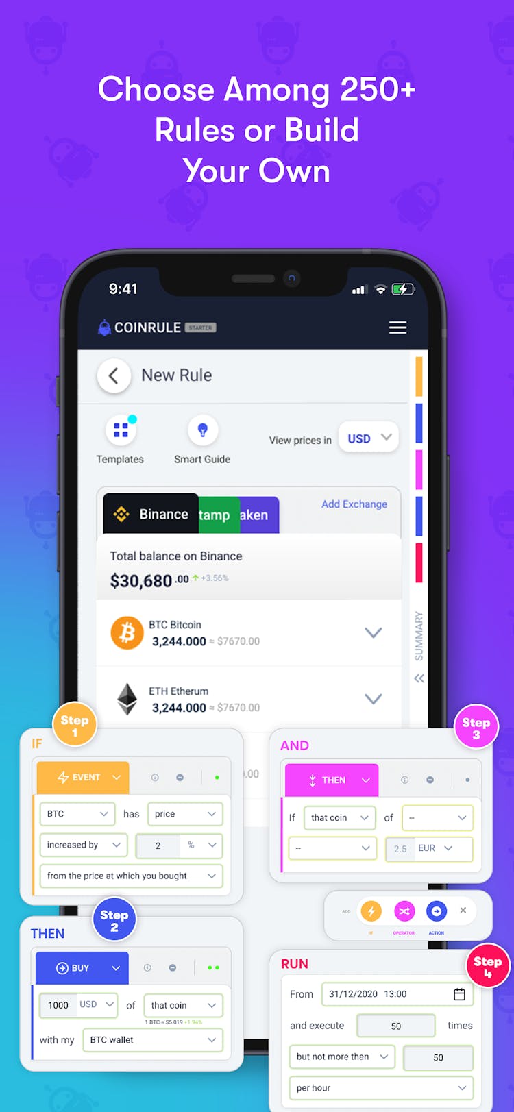 Coinrule lets you automate your crypto, stock, and ETF trades without coding. Build powerful strategies in minutes and run them across top exchanges and DeFi platforms.