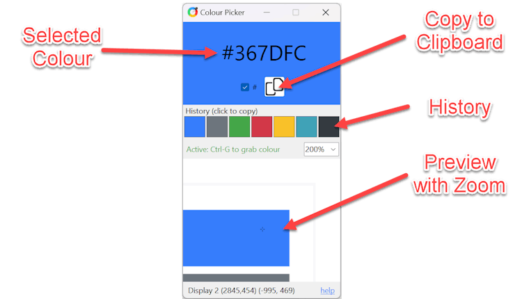 A simple colour picker utility to grab colours from any of your windows screens.