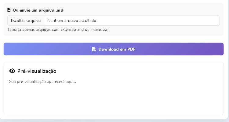 O Conversor Markdown para PDF é uma ferramenta simples e prática que transforma textos em Markdown em documentos PDF bem formatados, com pré-visualização imediata e suporte a arquivos .md e .markdown.