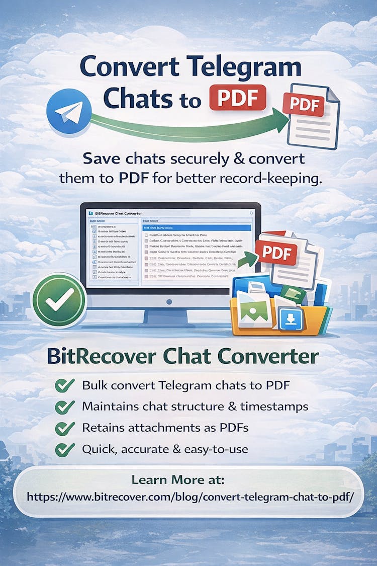 To convert Telegram Chats to PDF file format, the ultimate solution is the BitRecover Chat Converter. It is easy, has dual selection modes, and keeps the data originality maintained. Over and above that, users can also download its free demo version to test the softwares efficiency in saving Telegram messages to PDF format. Basically, this modern utility supports the Telegram exported JSON files and saves them to PDF and other 27+ other options. User can also select a saving location of their choice to store the output in an organized way.