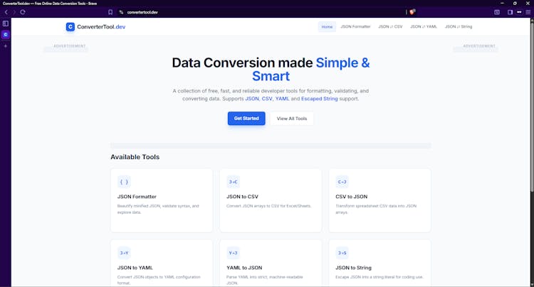 A collection of free, fast, and reliable developer tools for formatting, validating, and converting data (JSON, CSV, YAML, and strings).