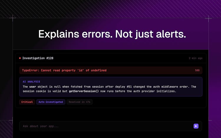 When something breaks, it doesn't just alert you — it investigates