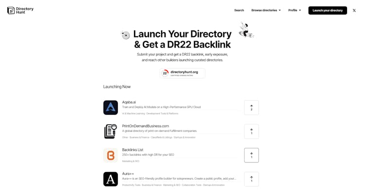 DirectoryHunt is the ultimate launchpad for creators building niche directories.