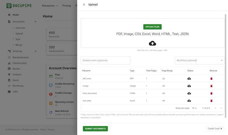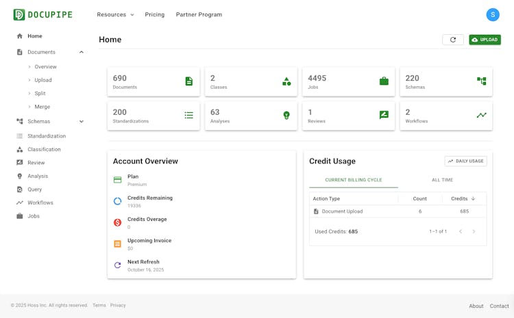AI-powered document processing that transforms PDFs, scans, and images into clean, structured data with OCR, LLM-powered schema mapping, and workflow automation.