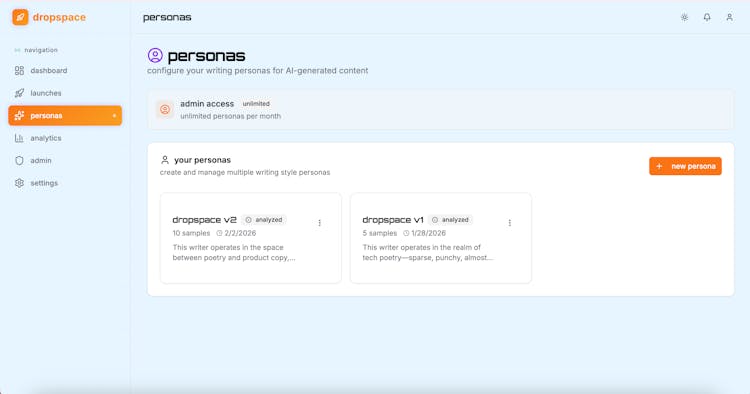 You write once. Dropspace shapeshifts your content into platform-native posts for Twitter/X, LinkedIn, Reddit, Instagram, TikTok, Facebook, Substack, Product Hunt, and Hacker News, dropspace adapts tone and format for each, then auto-posts or schedules.