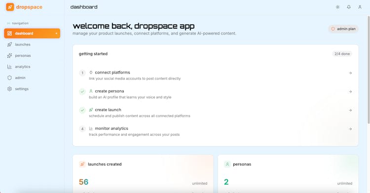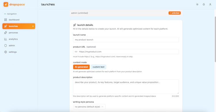 dropspace turns your product announcement into platform-native content for 9+ channels and posts everywhere in one click.