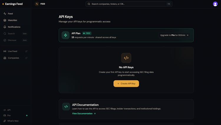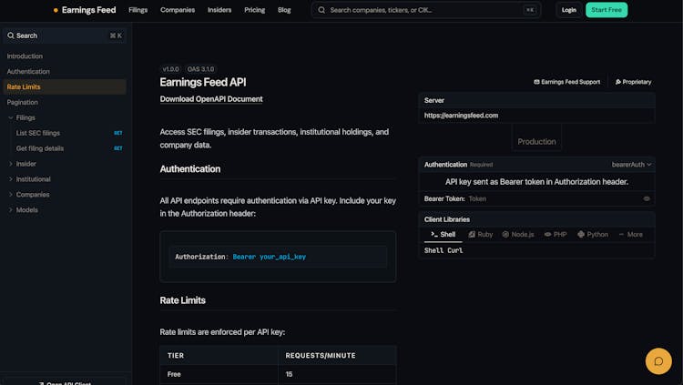 Earnings Feed API was launched by Nicholas Rempel in February 10th 2026.