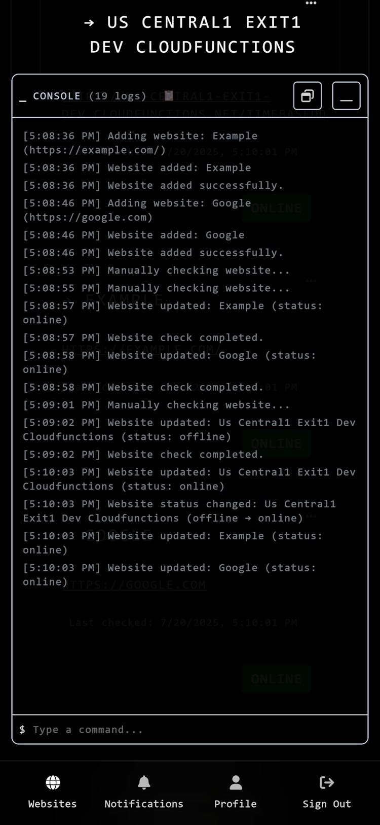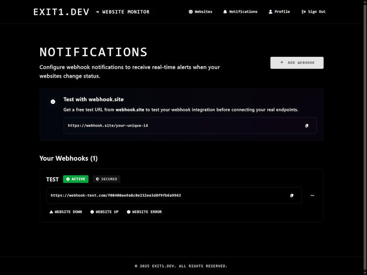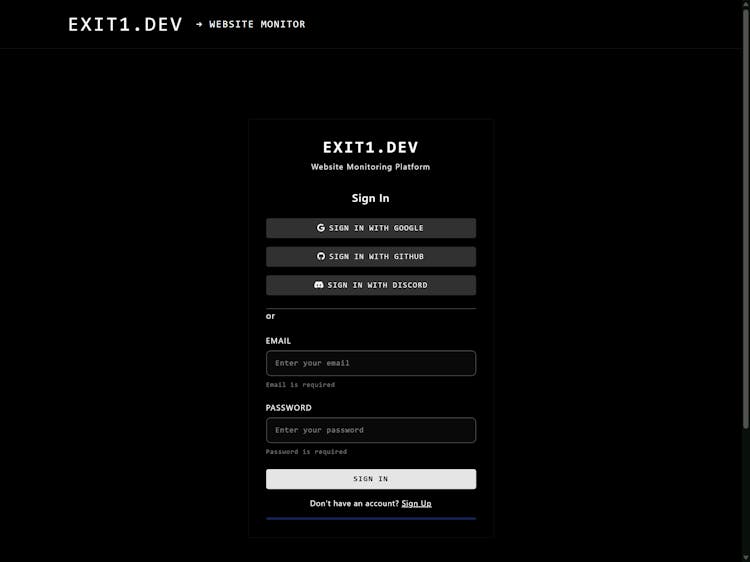 exit1.dev is a free, open‑source uptime monitoring tool built for indie developers and startups. It performs checks every minute, offers a terminal interface for CLI lovers, and sends webhook alerts to Slack, Discord or other integrations.