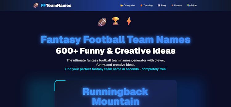Fantasy Football Team Names is your ultimate source for finding the most creative, witty, and hilarious team names for your fantasy football league. Gone are the days of generic names – our extensive collection is regularly updated with thousands of unique suggestions, categorized for easy browsing.
