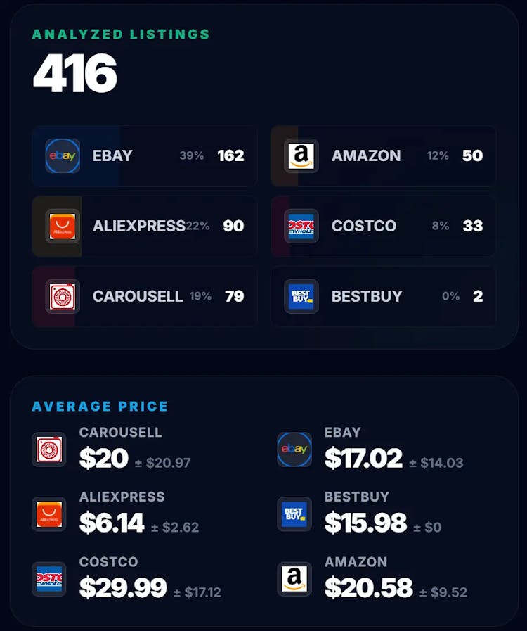 Save hours of scrolling. We scan every major marketplace in seconds to find the best products for you.