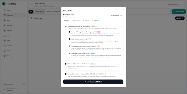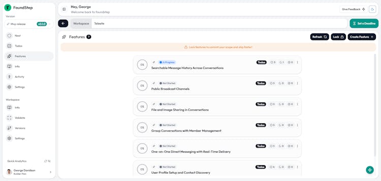 Foundstep is a project tool for indie developers who start a lot and finish little. Validation kills bad ideas early, Scope Locking stops feature creep, and a public Ship Wall turns finished work into proof. Less starting, more shipping. Free trial available for all plans.