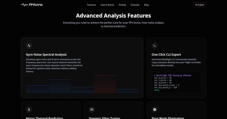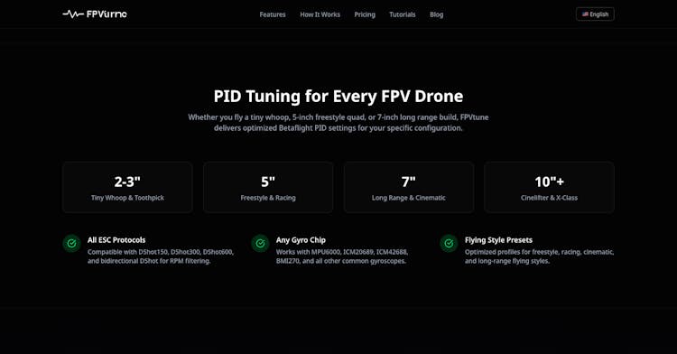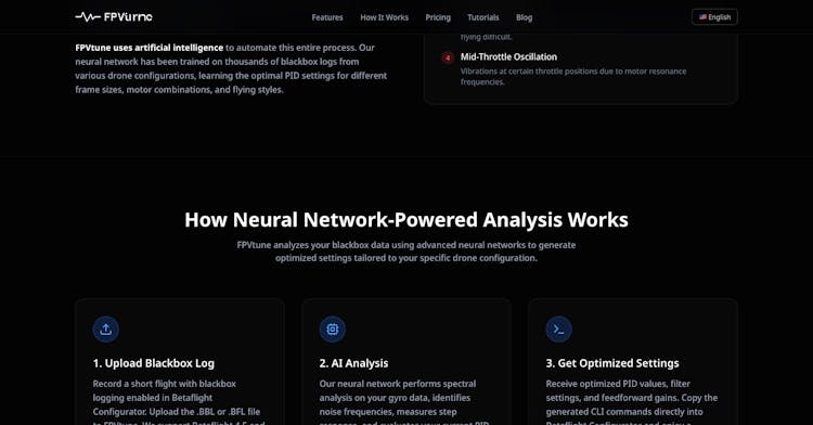 FPVtune analyzes your FPV drone's blackbox logs and generates optimized PID settings for Betaflight. No more guessing or endless test flights - just upload your log, get tuned PIDs, and fly smoother. Built for FPV pilots who want better flight performance without the tuning headache.